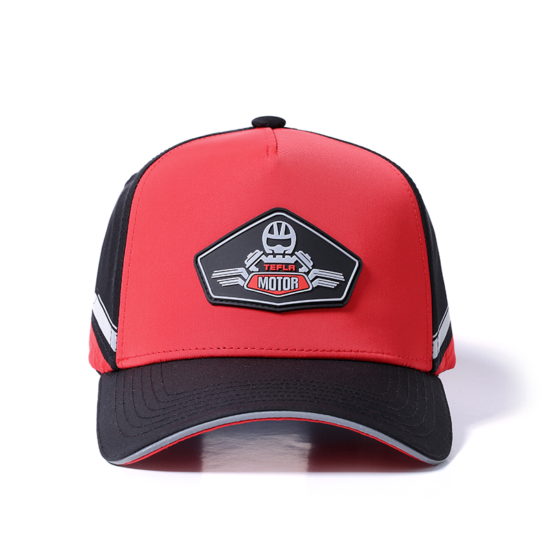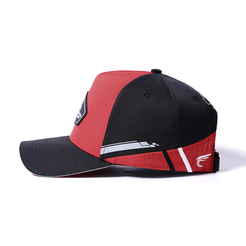 Faça uma forte declaração visual com nosso boné de beisebol com logotipo de borracha de PVC de 5 painéis, projetado para marcas de streetwear, coleções inspiradas no automobilismo e merchandising promocional. Apresentando impressionantes blocos de cores vermelho e preto e um logotipo de borracha em PVC durável, este boné combina atitude moderna com funcionalidade cotidiana.