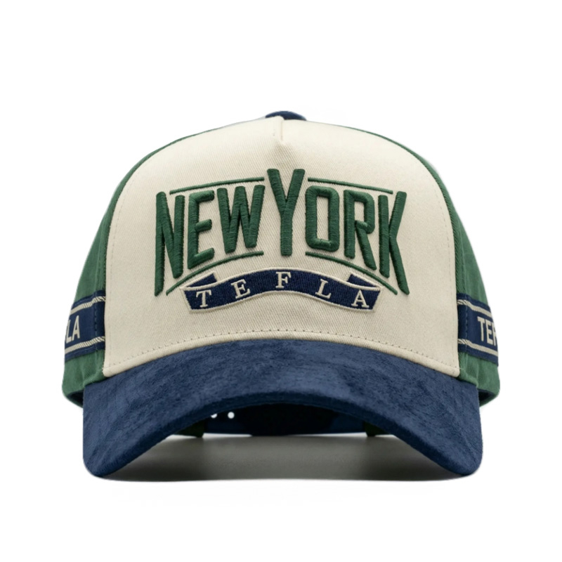 O painel frontal apresenta um ousado logotipo bordado em 3D 'New York NY' , proporcionando forte profundidade, textura e impacto visual. A costura de alta densidade garante definição nítida, excelente durabilidade e uso duradouro - ideal para programas de vendas quentes nos EUA, distribuição no varejo e uso promocional.