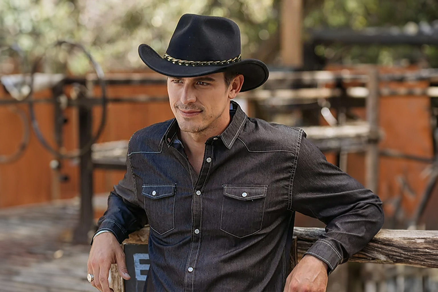 Chapéu de cowboy -abrangente, estruturado e mergulhado na tradição ocidental.